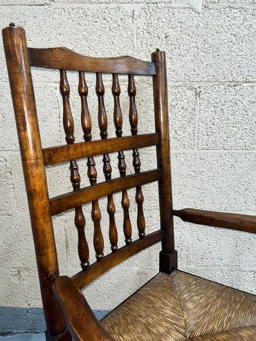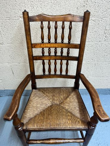 Comfortable kitchen dining chair with woven seat, in the style of William Birch.
