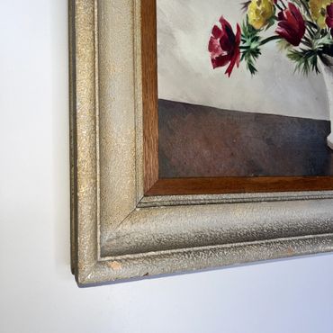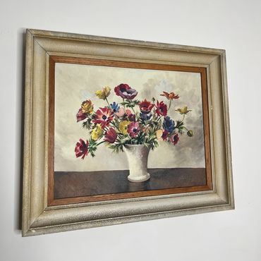 Floral oil painting Spring Flowers by C M Trinder in a cream painted Frame.